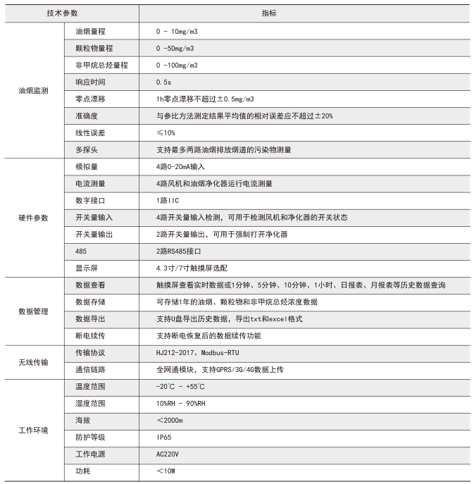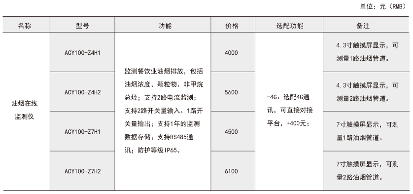 ACY100型饮食业油烟浓度在线监控仪是针对饮食业厨房油烟排放场合而设计的,由油烟探头、传感器、控制板和显示屏等部分组成,用于监控油烟、颗粒物和非甲烷总烃等污染物的排放状况和过程参数,以及风机和净化器的电流和开关状态等,并可通 过RS232/485或4G等方式进行数据传输的设备。监控仪支持最多两路油烟排放烟道的污染物测量。