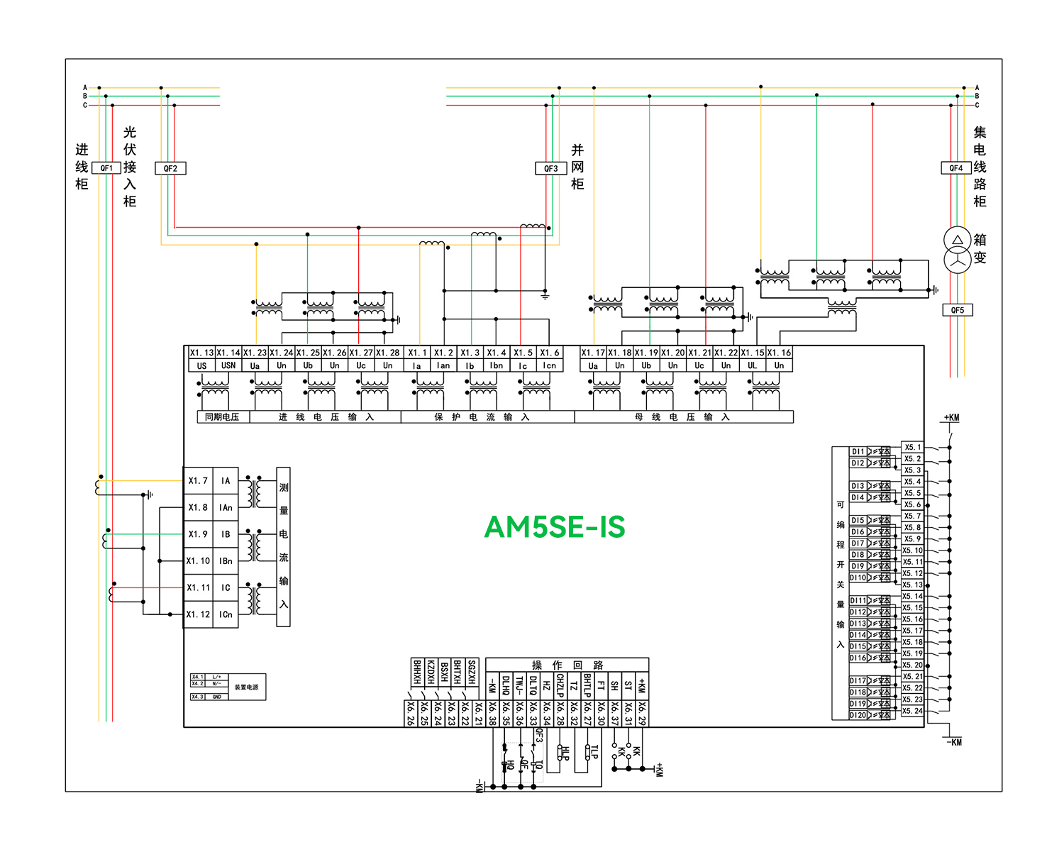 | AM5SE-IS | 三段式过流保护(可经低电压闭锁、可带方向闭锁)、反时限过流保护(可经低电压闭锁)、两段式零序101过流(可带方向闭锁)/101反时限过流保护、两段式零序102过流(可带方向闭锁)/102反时限过流保护、两段式低电压保护(跳闸/告警)、两段式过电压保护(跳闸/告警)、零序过压保护(跳闸/告誉)、两段式逆功率保护、两段式频率保护(低频减载/高频保护)、频率突变跳闸、有压自动合闸、重合闸、后加速过流保护(可经低电压闭锁)、过负荷保护(跳闸/告警)、PT断线告警、控制回路断线告警、FC回路配合的过流闭锁功能、非电量保护(跳闸/告警)、检同期、CT断线告警、检修状态闭锁 | 防孤岛保护装置 | 35kV、10kV及低压380V分布式光伏发电、燃气发电等新能源井网供电系统。 | 7500 |