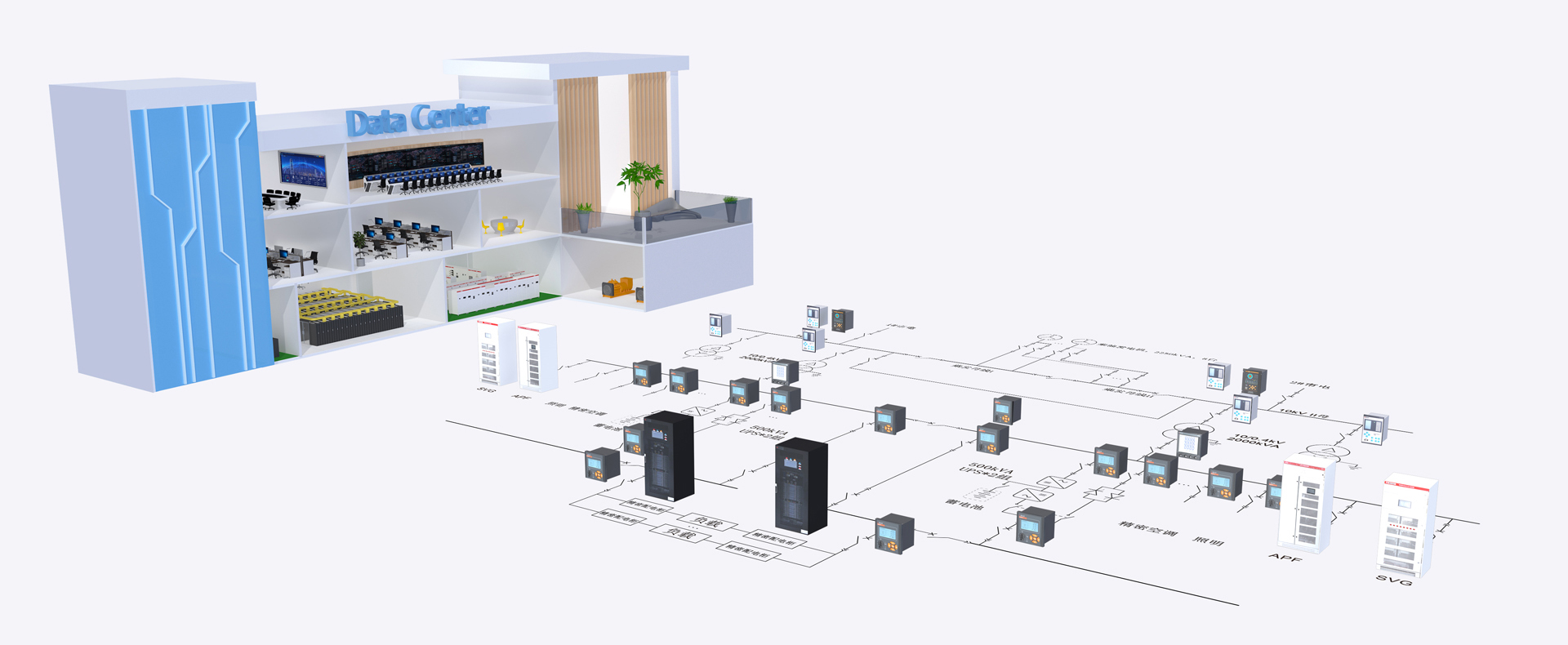 数据中心人流较少,面积大,机房多,合理使用照明控制系统,通过感应控制做到人来灯亮,人走灯灭或保持地强度照明,尽量解决照明用电。