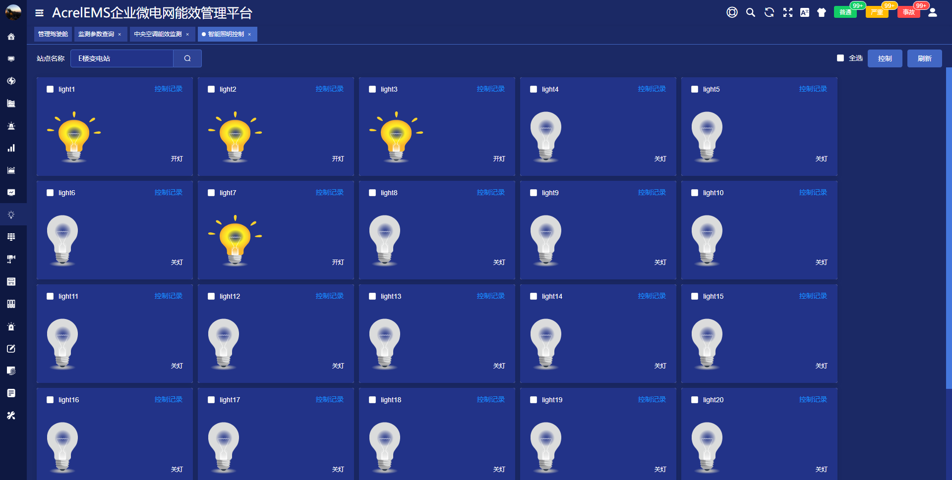 灯具状态实时变化,响应迅速。
