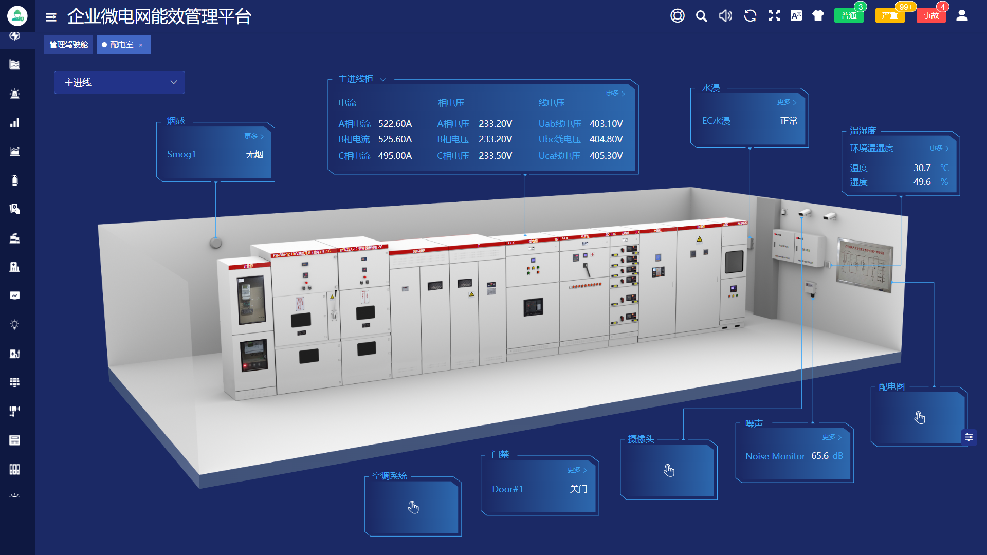 安科瑞为该项目提供Acrel EMS企业微电网系统。包含一套Acrel EMS电力监控软件,335台AEM96/CFK多功能仪表以及32台AM5系列综保。