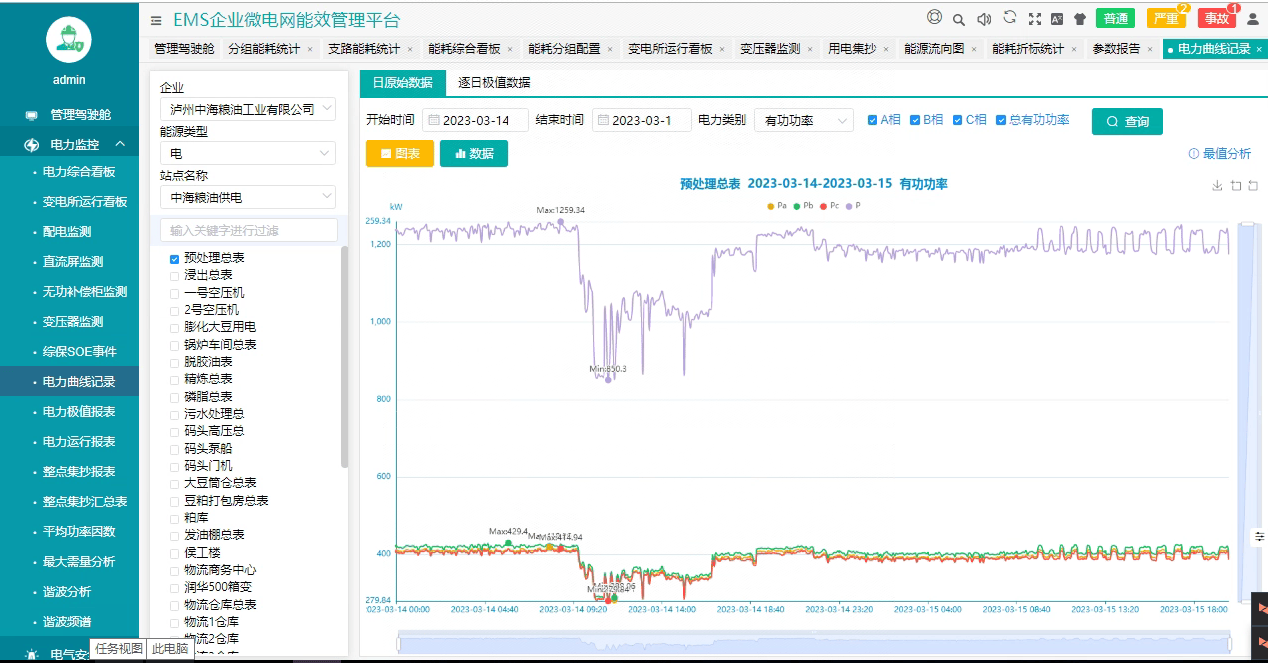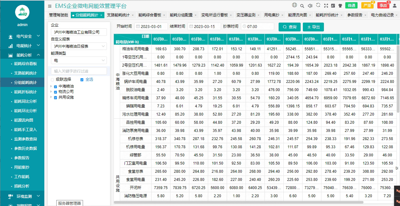 泸州中海粮油能耗监测系统改造项目EMS系统能够分析建筑物内部的用电、用水、用气等数据,帮助用户发现并降低使用能源的浪费,进而减少能源耗费,节约能耗成本。
