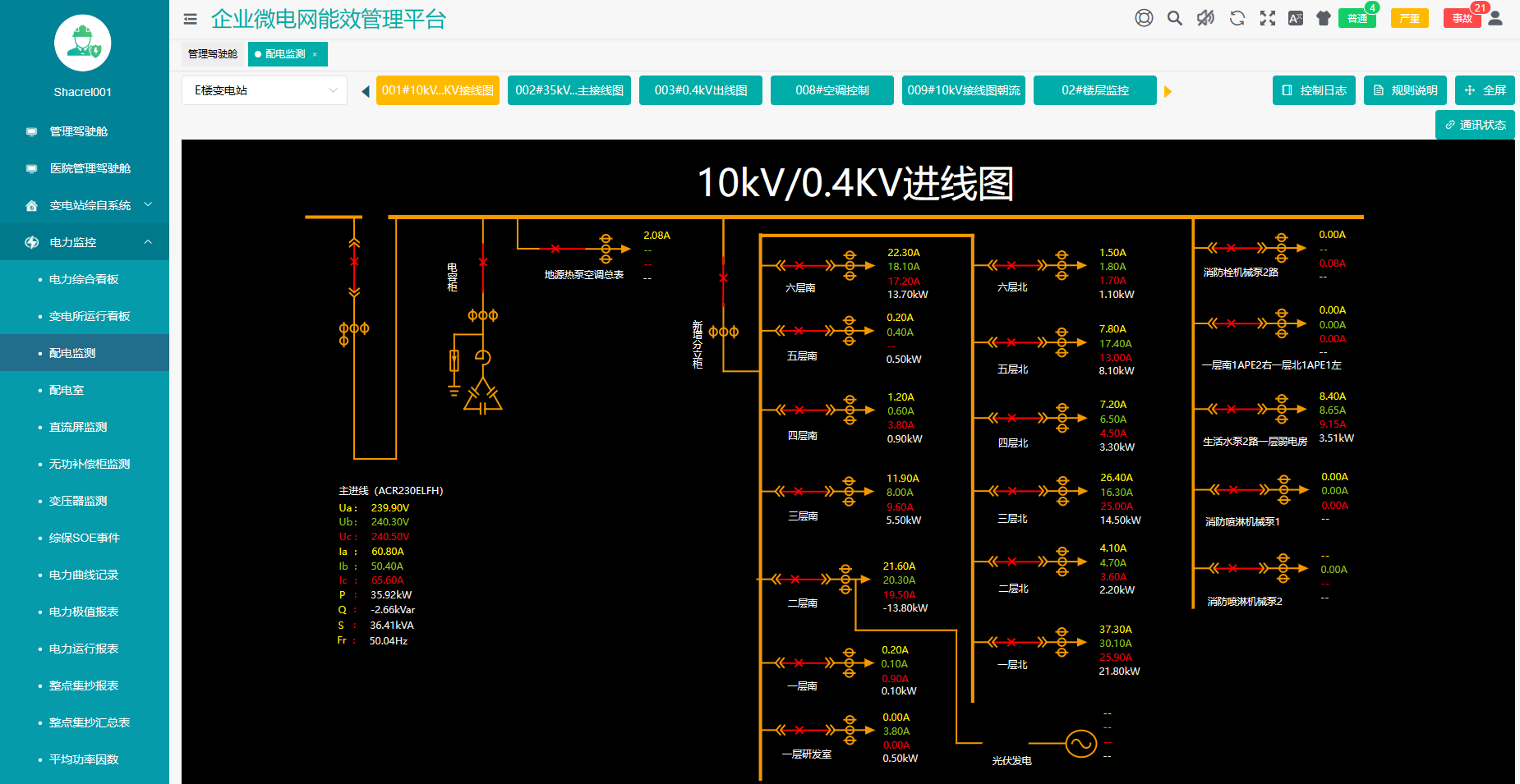 项目包括:动力中心全场中心变配所(ET1),包装物流中心变配所(ET2),包装车间变配电室1(ET3),包装车间变配电室2(ET4),成品物流中心变配电室(ET5),变配电室(ET6),地下室变配电室(ET7),采集这7个配电房的微机保护、仪表、温控仪、UPS、直流屏。