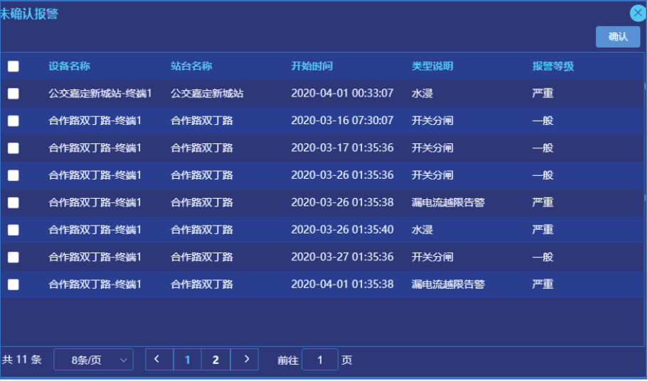 通过在公交站配电箱安装安全用电监测终端,实时监测公交车站配电系统漏电电流及水浸状态,并将监测数据通过移动网络上传至云端服务器。管理人员可通过手机APP、短信及时接收现场的异常报警信息。安全用电监测终端可以接收平台控制指令,在天气恶劣时远程断开公交站电源以确保安全。控制命令可以单独控制某个公交车站,也可以根据公交线路或者区域集群控制,提高管理效率。