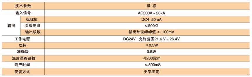 技术要求:输入电流AC1000A;输出DC4-20mA;准确级0.5;长度350mm。