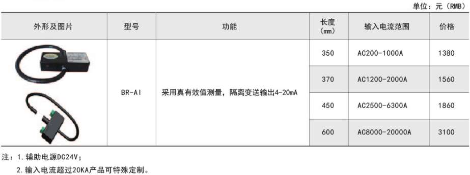 产品简介:BR系列产品应用电磁感应原理,对电网中的交流大电流进行实时测量,采用真有效值和线性补偿技术,将其隔离变换为标准的直流信号输出。。