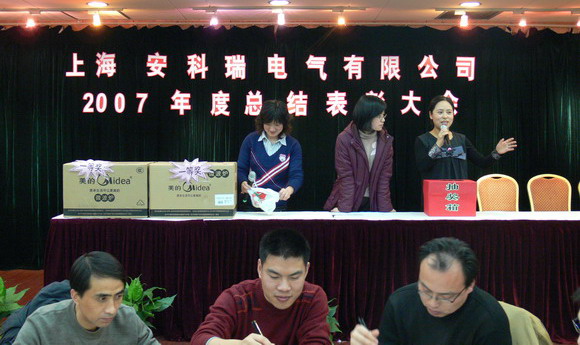 12月28日晚,2007年度总结表彰大会庆功宴在三星级饭店上海通欣大酒店隆重举行。 公司副总经理吴建明宣布庆功宴会开始,由董事长周中主持执杯,庆贺2007年度取得了丰硕成果。 宴会中间,穿插了精彩的娱乐节目,并举行了抽奖活动。由周董事长亲自抽取的特等奖颁奖,将庆功宴会推向了高潮。同时,2007年度总结表彰大会庆功宴会也在欢声笑语、热情高涨的氛围中圆满结束。