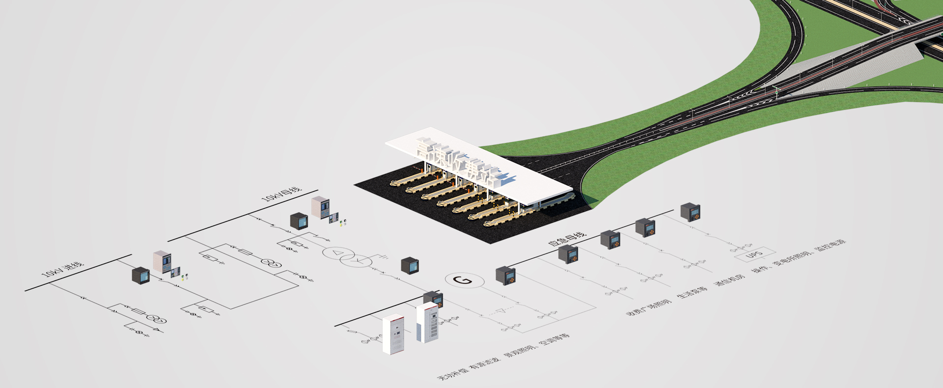 高速公路供配电监控系统包括隧道变电所、服务区变电所、收费站变电所、沿线箱式变电站、互通枢纽、路灯电源、风机控制箱等区域的电力综合监控。
